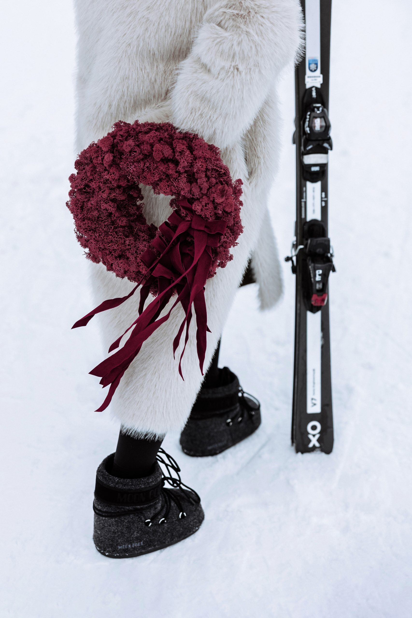 Vijenac za vrata ručno je izrađen od islandske mahovine uz dodatak burgundy baršunastih mašni. Minimalističan, ali efektan dizajn ovog vijenca upotpuniti će svaki interijer.